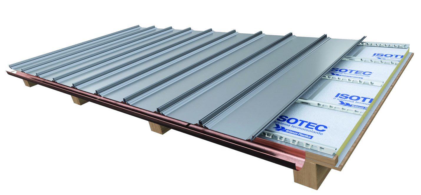 Isotec è il sistema termoisolante di Brianza Plastica per l’isolamento ventilato di qualsiasi copertura. Il pannello composito in poliuretano espanso rigido è rivestito con lamina di alluminio e dotato di un correntino metallico integrato, studiato per supportare gli elementi di copertura e creare un’intercapedine di aerazione. La ventilazione che si attiva sotto il manto di copertura favorisce il rapido smaltimento dell’umidità in inverno e del calore in eccesso in estate, oltre a preservare la funzionalità degli elementi di copertura nel tempo. Isotec offre una doppia compatibilità che permette la posa su tutti i tipi di struttura portante, anche con pendenze di falda molto basse, e l’abbinamento con qualsiasi tipo di rivestimento (tegole, coppi, lastre continue, pietra naturale ecc.). Isotec può essere utilizzato sia per la realizzazione di nuovi edifici sia per interventi di ristrutturazione e riefficientamento del patrimonio costruito esistente. Tutti i prodotti della gamma Isotec sono conformi ai Cam, e sono corredati della mappatura Leed V4.