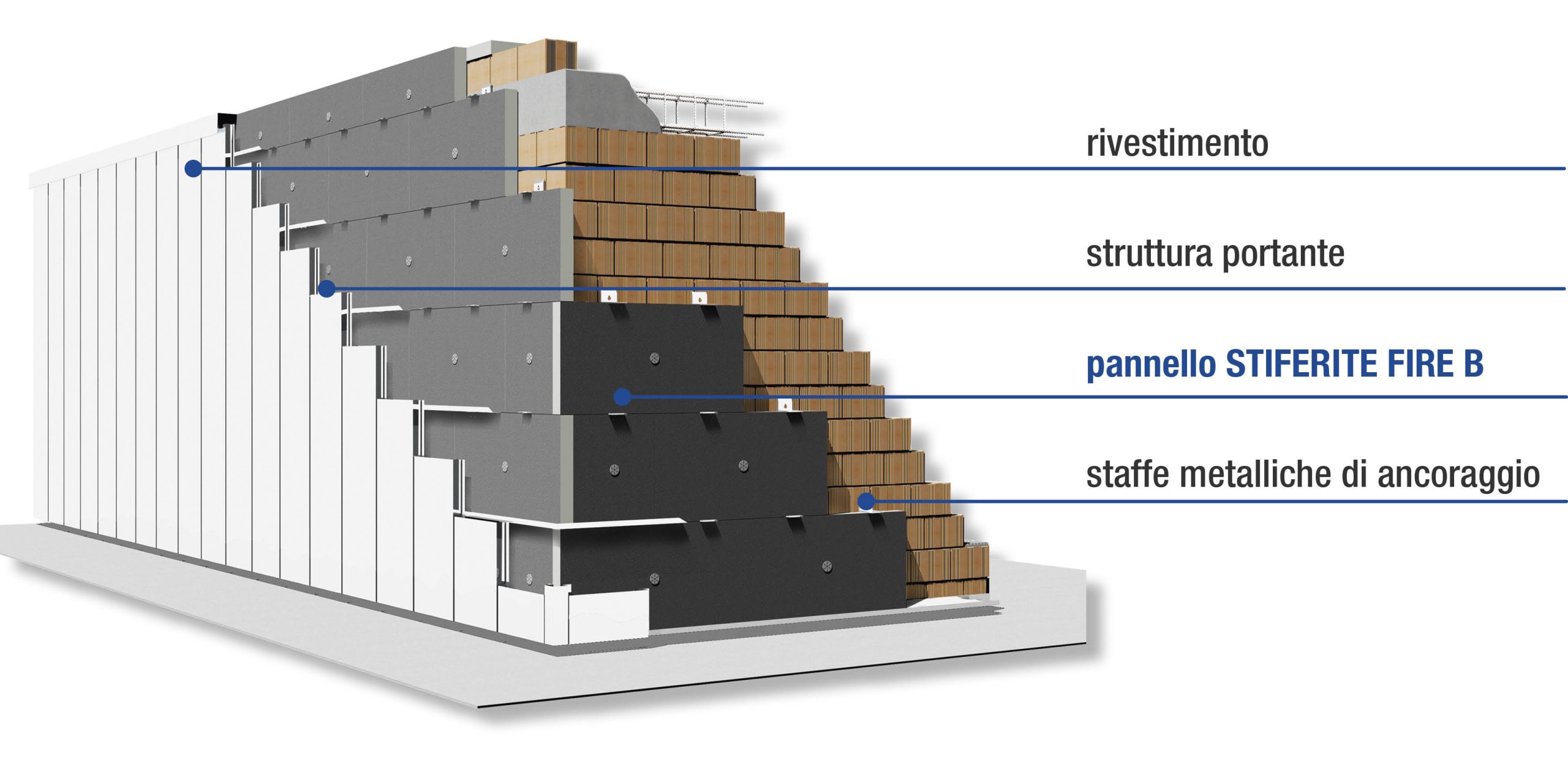 Il pannello isolante in schiuma polyiso Stiferite Fire B è caratterizzato da un rivestimento in velo vetro addizionato da fibre minerali su una faccia e sull’altra, da posizionare sul lato maggiormente esposto al rischio incendi. Grazie alla particolare formulazione della schiuma poliuretanica, e alle caratteristiche del rivestimento, Stiferite Fire B raggiunge l’euroclasse di reazione al fuoco B s1 d0, che rappresenta il livello di sicurezza più elevato ottenibile con un materiale organico. Di particolare interesse e praticità di impiego anche la scelta di utilizzare il colore nero per il rivestimento; un dettaglio che rende “invisibile” lo strato isolante anche in presenza di giunti relativamente ampi tra gli elementi che compongono la facciata continua. È possibile così procedere alla finitura della facciata immediatamente dopo aver posizionato lo strato isolante eliminando i costi e gli oneri di posa dei tradizionali teli scuri con finalità estetiche. I pannelli Stiferite Fire B sono conformi ai Cam.