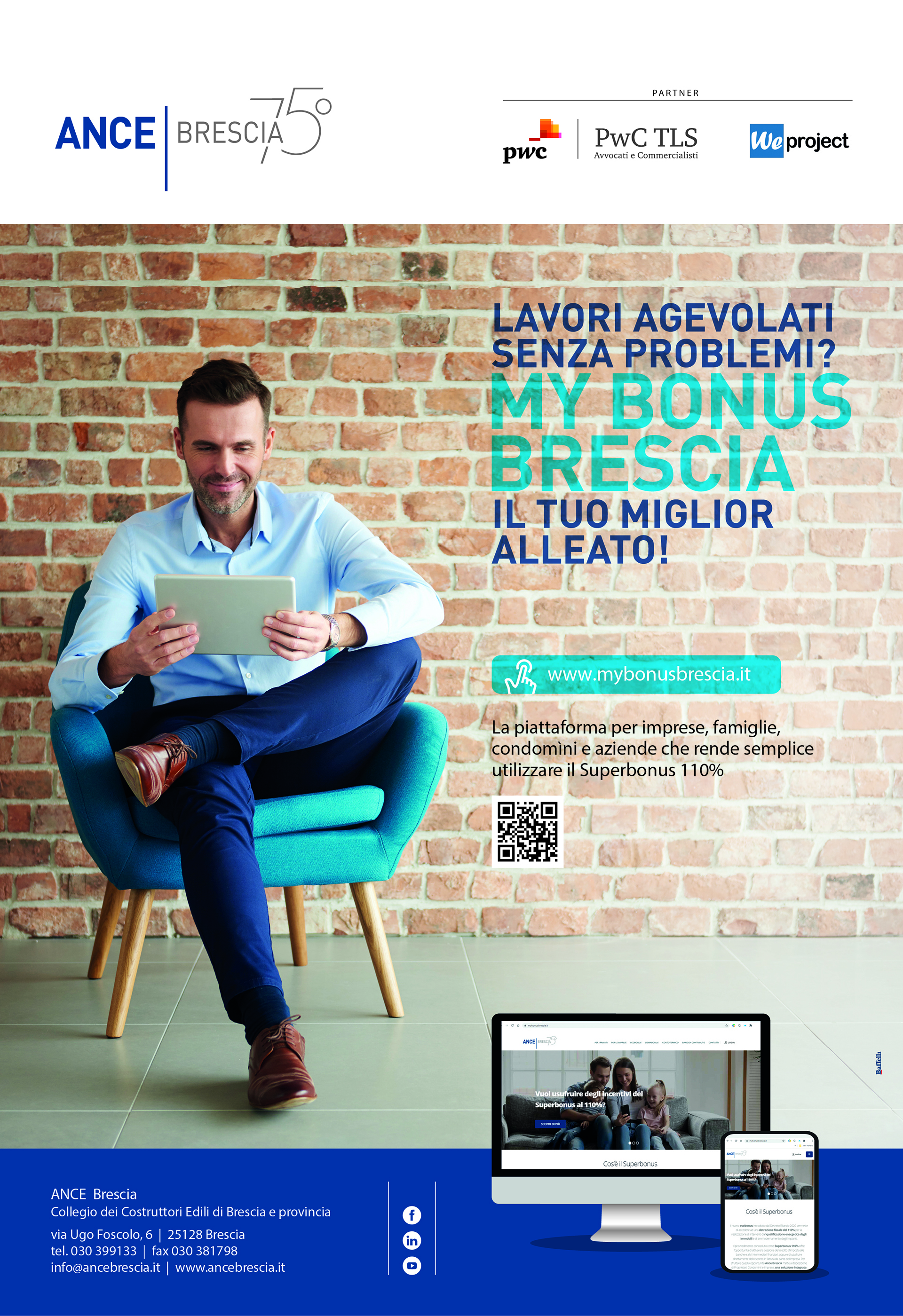 «La nostra collaborazione con Ance Brescia ha come obiettivo quello di supportare le imprese nella complessa attività di preparazione e controllo del set documentale associato al Superbonus 110%. Si tratta di un supporto che aiuta le imprese nelle delicate interlocuzioni con le autorità e con gli altri soggetti coinvolti (banche, assicurazioni, fornitori, clienti)». (vb)