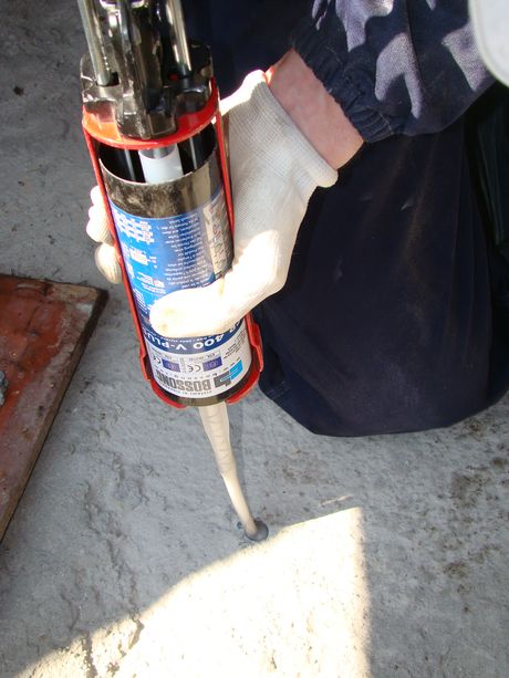 Una volta preparata la cartuccia, secondo le indicazioni riportate in etichetta, sui materiali di base pieni viene iniettata la resina nel foro riempiendo la cavità da circa la metà a due terzi del volume partendo dal fondo. La barra filettata o un altro tipo di organo di fissaggio, viene inserita con una leggera rotazione in modo da distribuire la resina in maniera uniforme. La rotazione serve anche per ottenere un completo aggancio tra la filettatura della barra e la resina e tra questa e la parete del foro. Su materiali cavi sono impiegati gli appositi tasselli in plastica con rete di distribuzione. Per gli ancoranti a fiala è sufficiente immettere il contenitore della resina nel foro rispettando la direzione indicata sull’involucro quando è prevista dallo specifico sistema. Con la rotopercussione o con il sistema di inserimento a martello, la barra dell’ancoraggio è inserita a forza nel foro per frammentare la fiala e permettere al preparato di distribuirsi in modo uniforme lungo le pareti della cavità aggrappandosi al supporto e all’ancorante grazie alle doti di alta bagnabilità della resina. Anche in questo caso i migliori risultati di tenuta si ottengono con fori perfettamente puliti e depolverati.