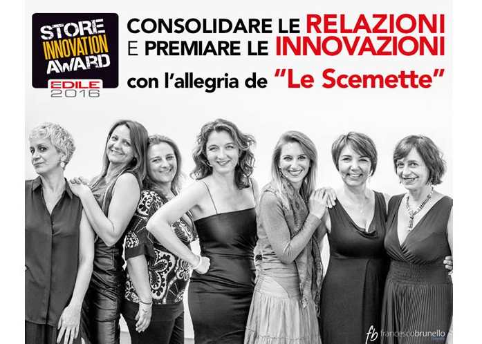 La serata, che prevede dei momenti di networking tra i rappresentanti della produzione e quelli della distribuzione di materiali, finiture, accessori e sistemi per l’edilizia e l’architettura, sarà vivacizzata da “Le scemette“, un gruppo comico tutto al femminile.
