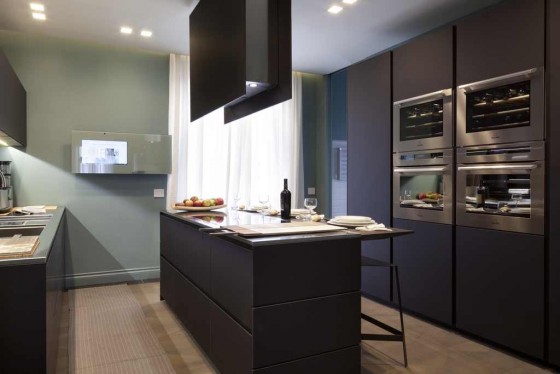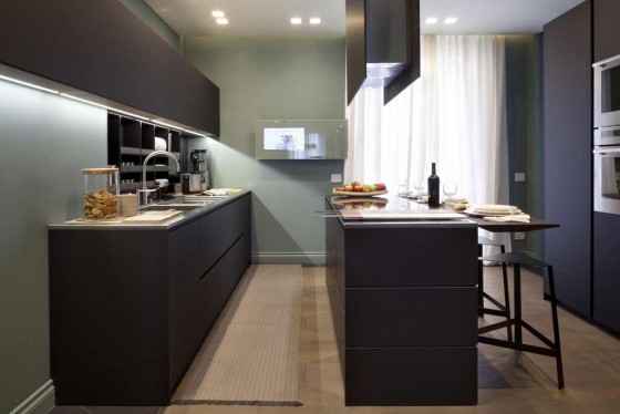 edilizianews.it Laminato nero opaco, acciaio e vetro sono i materiali che caratterizzano la cucina (foto di Matteo Cirenei)