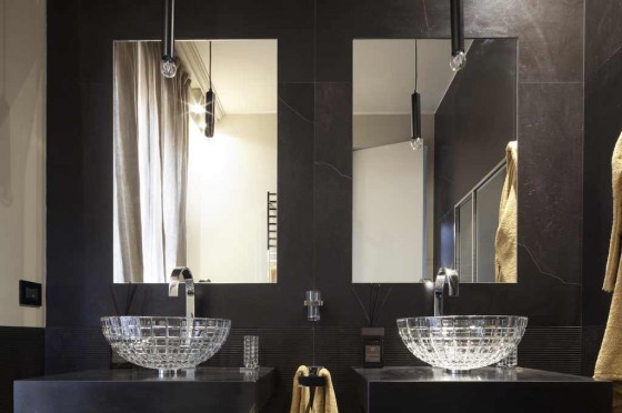 edilizianews.it Particolare del bagno padronale “lui” con i lavabi in cristallo (foto di Matteo Cirenei)