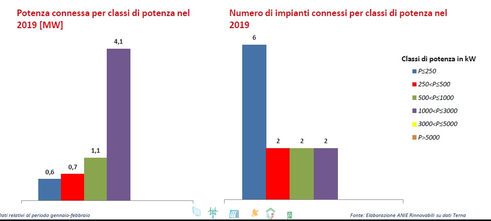 Nel mese di gennaio 2019 sono stati attivati solo 9 impianti per un totale di 6 MW, mentre a febbraio 2019 si è registrata l’attivazione di un nuovo impianto contestualmente alla disattivazione di 4,1 Mw di potenza.