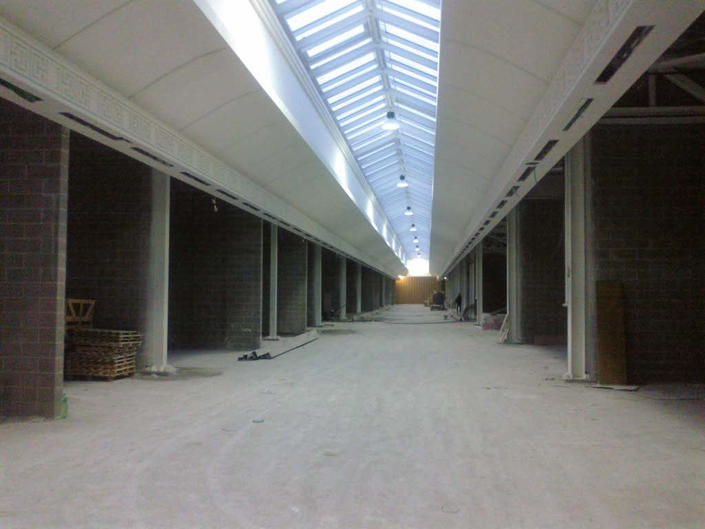La continuità del soffitto vetrato è interrotta grazie a lucernari piramidali che riprendono quelli del centro commerciale esistente segnando le zone di accesso e di collegamento principale. Gli spazi interni sono stati unificati grazie a un trattamento materico omogeneo con stucchi dal decoro geometrico e marmi policromi, che si riallacciano alla tradizione locali. Gli interni sono stati progettati in modo da massimizzare la luce naturale e sono spazi liberi molto ampi, adatti ai visitatori.
