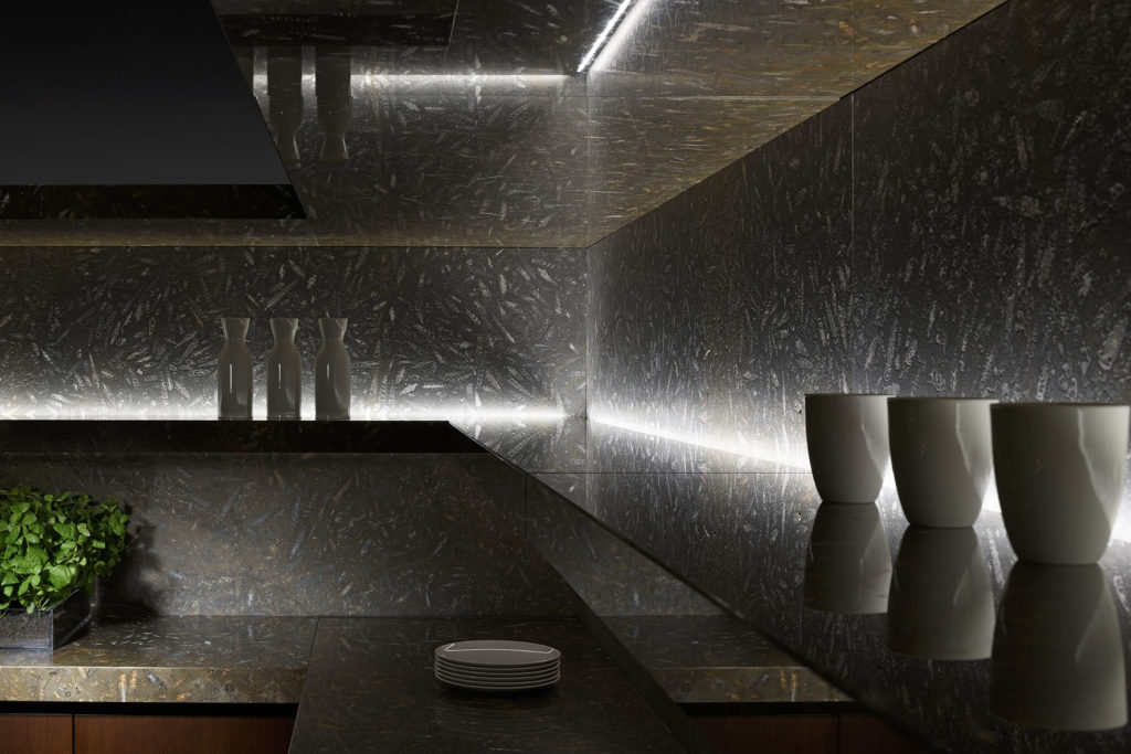 La realizzazione di La Spada è un esempio di come questa pietra naturale dal design elegante possa essere modellata e adattata a seconda della personalità del designer in soluzioni originali, uniche e dal forte impatto.