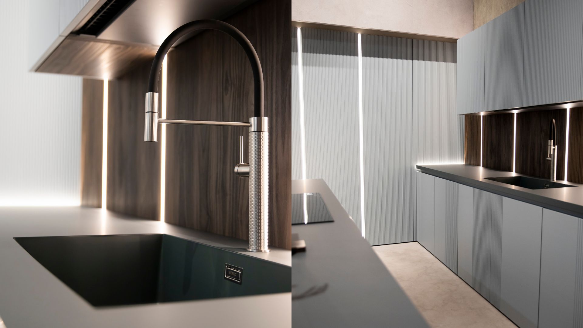 Il risultato della collaborazione di Aran Cucine con Marco Piva, Luce, va oltre il semplice concetto di cucina: è un viaggio trasformativo che parte dall’architettura stessa e si estende fino ai più minuti dettagli di design.