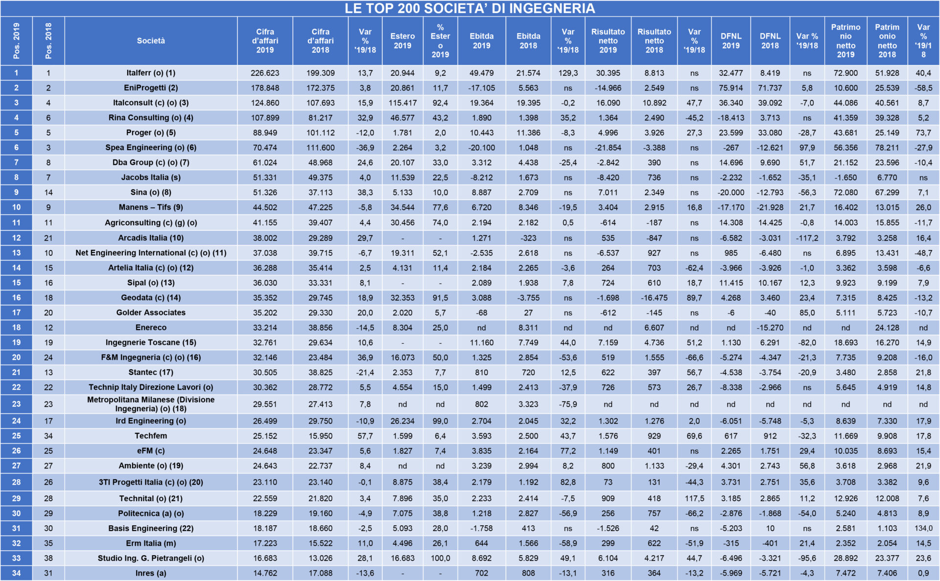 «Il 2019 è stato un anno di grande performance per Arcadis Italia, grazie al lavoro di tutti i nostri collaboratori e di tutti i clienti che hanno rinnovato la fiducia nei nostri confronti. Siamo particolarmente orgogliosi di questo risultato poiché Arcadis Italia nella classifica è la prima società di ingegneria con fatturato al 100% in Italia, preceduta dai colossi delle grandi commesse pubbliche. Ringraziamo il Prof. Norsa, che da oltre 35 anni, con grande impegno e dedizione redige le classifiche dell’imprenditoria delle costruzioni, pubblicando il report delle 200 migliori società di architettura e società di ingegneria italiane per fatturato». (vb)