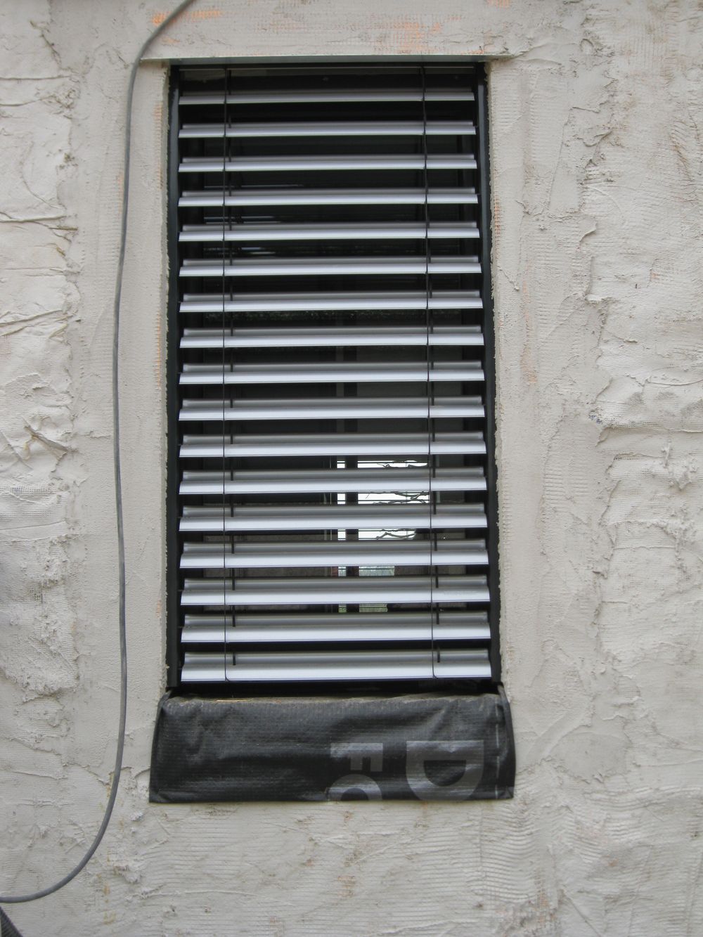 Prima del posizionamento dei telai prefabbricati, tutta la superficie muraria esterna è stata pulita e omogeneizzata rimuovendo la pittura ormai plasticizzata per evitare problemi e irregolarità nella successiva fase di posa.