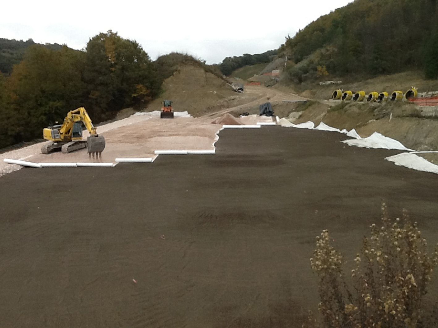 Utilizzati 20mila mc di argilla espansa Leca in granulometria 0-30, posata in più strati con interposizione di tessuto non tessuto e successivamente rullati per assicurarne una adeguata compattazione.