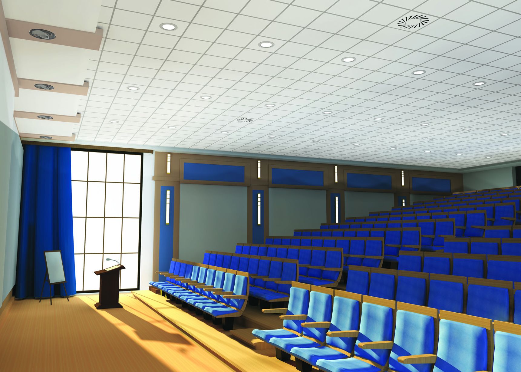 A seconda degli spazi e dei materiali e finiture presenti nella stanza, è opportuno scegliere il controsoffitto più idoneo poiché questi incidono positivamente o negativamente sulla risposta acustica dell’ambiente, in relazione alla loro capacità di riflettere il rumore o di assorbirlo completamente.