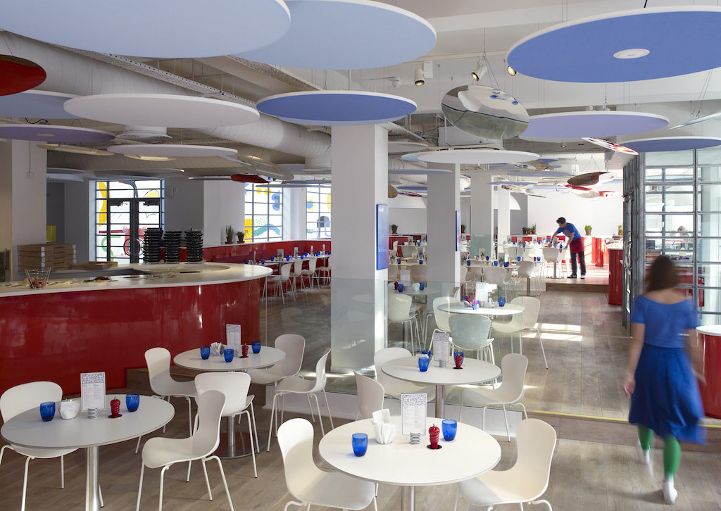 Acustica e design sono qui mixati per valorizzarsi a vicenda: con il loro aspetto moderno e versatile, i controsoffitti Armstrong risultano particolarmente idonei negli esercizi commerciali, dove la cura del design, dei materiali e dei colori è studiata ad hoc per coinvolgere il consumatore in una shopping experience unica.