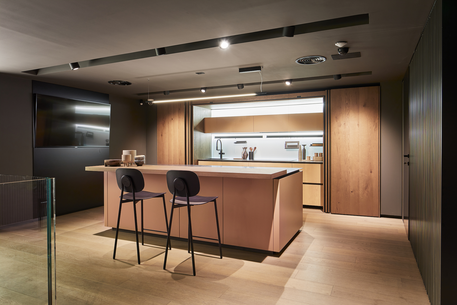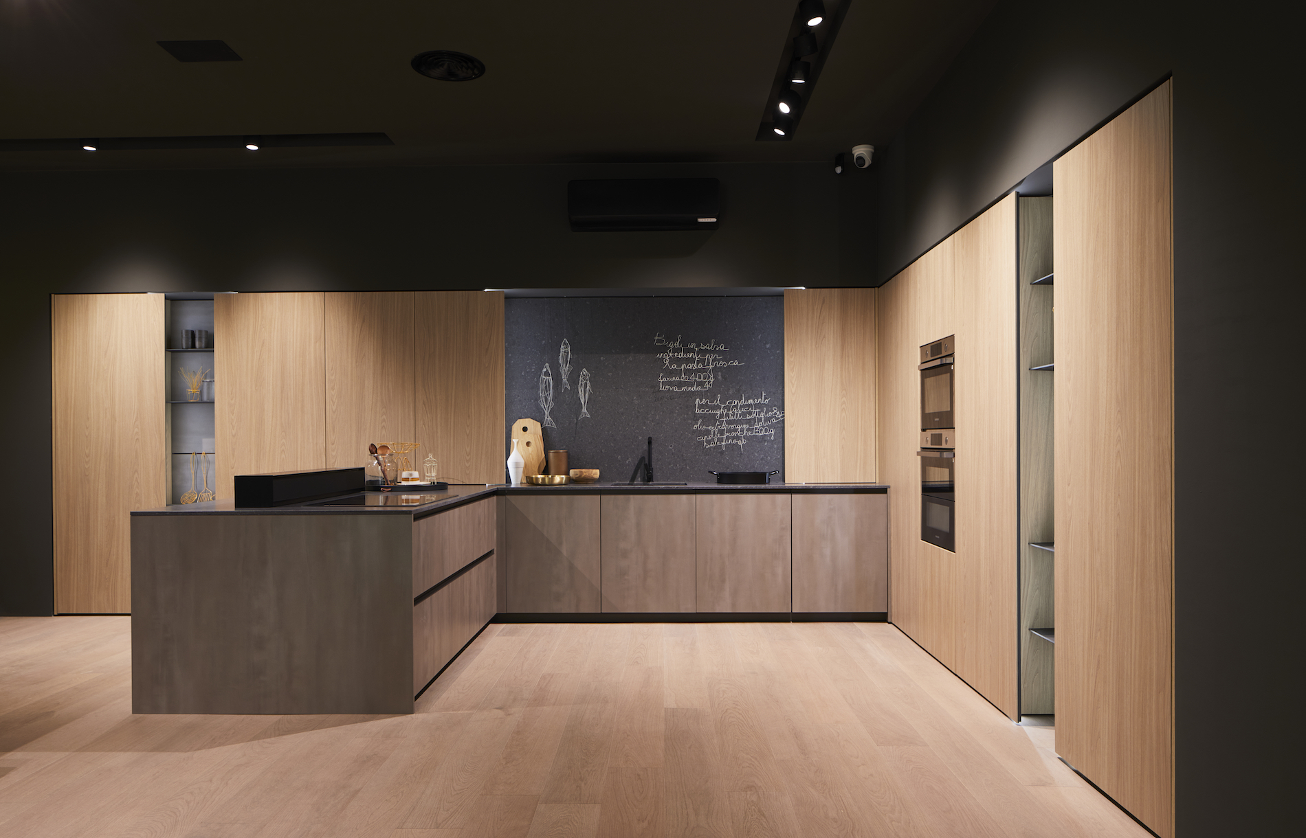 Le maniglie sono tutte in alluminio riciclabile. I top, oltre che in laminam, acciaio inox e cosmolite, sono disponibili anche in altri composti ceramici dalle caratteristiche simili (abitum, infinity, iris e dekton).