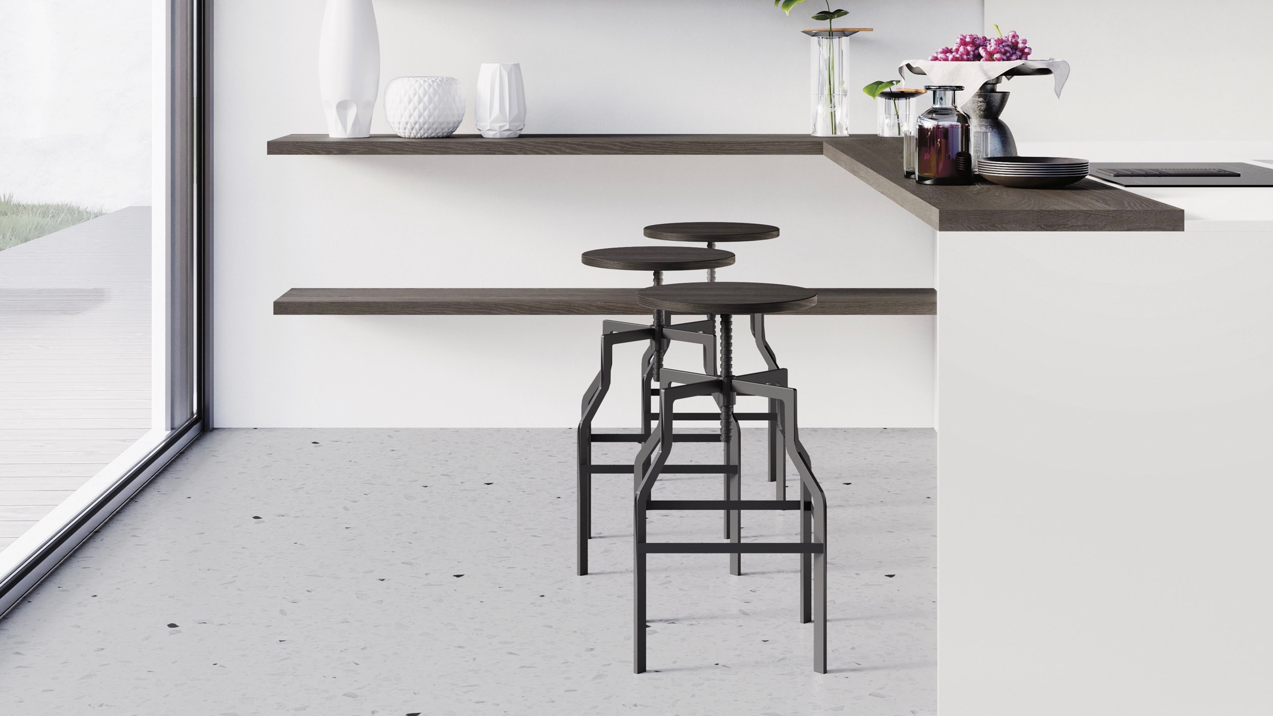 Vetro, gres porcellanato, Fenix, HPL, legno: le piacevoli sensazioni tattili e le emozionanti impressioni visive delle superfici di AL 32 regalano emozioni sempre nuove.