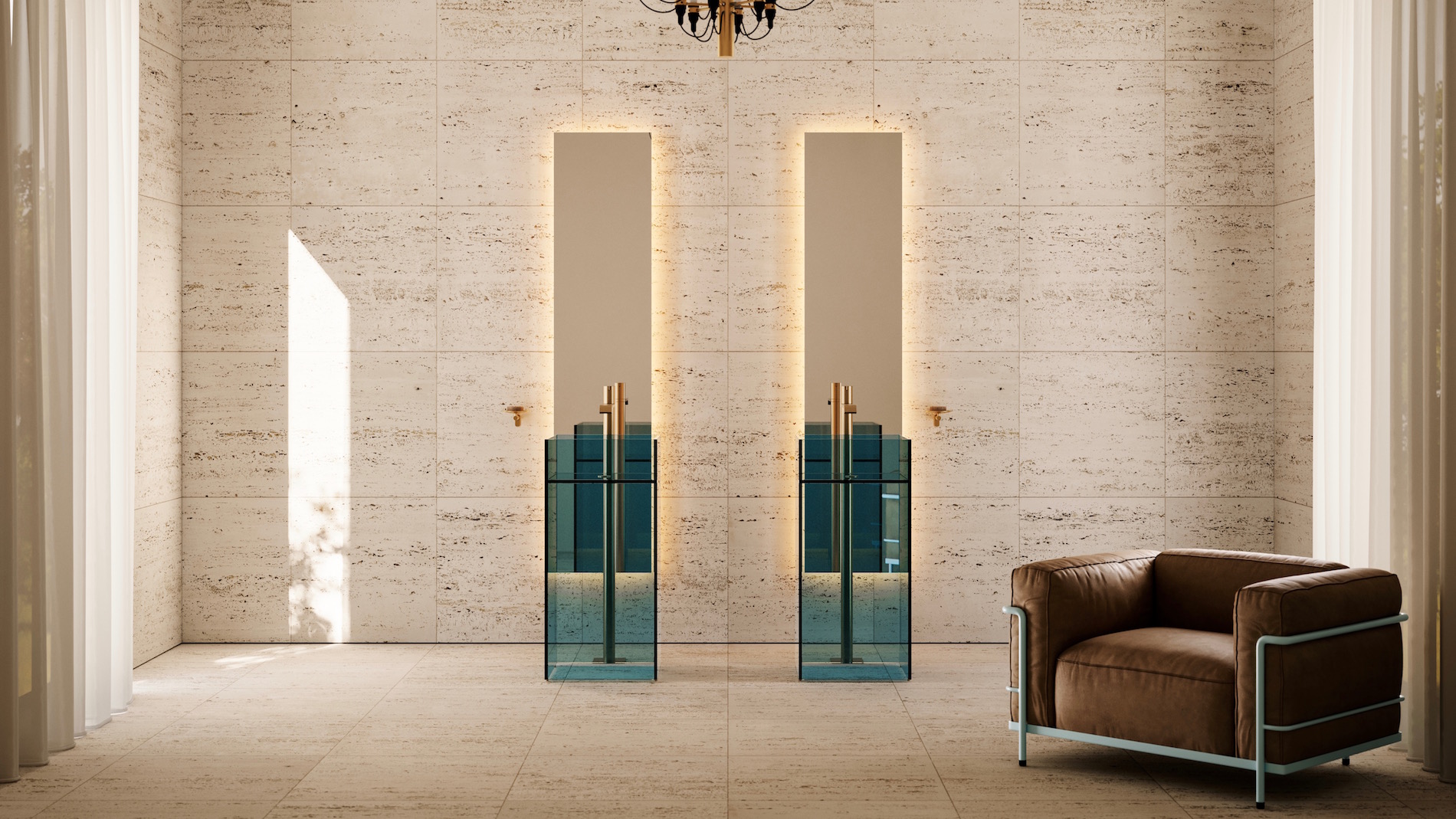 Le forme eleganti e precise di Kubik includono sia lavabi free standing, che si estendono dal pavimento, sia modelli da appoggio, destinati a essere installati su un piano. Realizzati in vetro trasparente di forte spessore e disponibili nelle tonalità verde, blu e ambra, i lavabi Kubik permettono alla luce di attraversarli, creando raffinati giochi di riflessi che impreziosiscono l’ambiente.