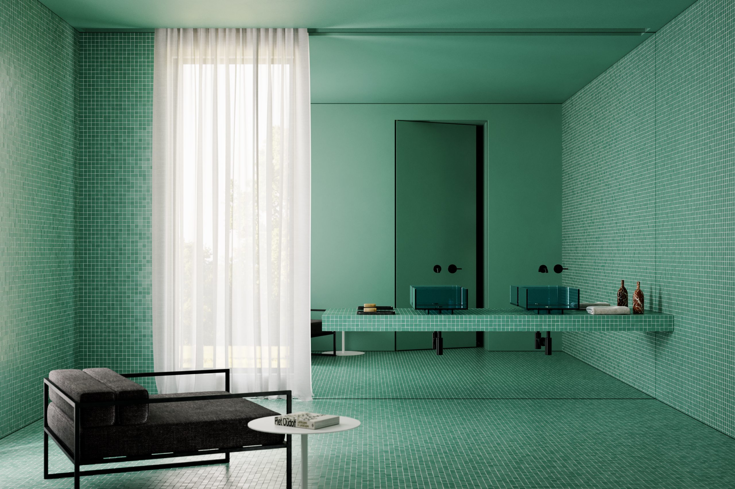 L’architetto Cappellini aggiunge:«Una forma volutamente semplice ed elementare per esaltare al massimo la forza espressiva del vetro, materiale principe di Artelinea».