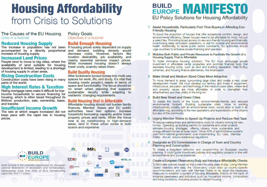 Nel 2024, Build Europe ha pubblicato il suo nuovo Manifesto sugli alloggi a prezzi accessibili.