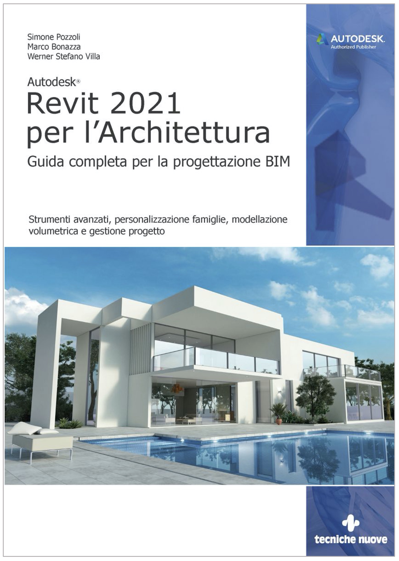 Autodesk® Revit 2021 per l’Architettura, una guida completa sotto ogni aspetto e aggiornata alla versione 2021, tratta in modo esaustivo l’uso di Revit per la progettazione architettonica orientata al BIM, partendo dalle conoscenze basilari e affrontando l’intero flusso di lavoro fino ad arrivare alla personalizzazione di famiglie, alla modellazione avanzata di volumetrie, alle fasi di lavoro, all’analisi con Insight 360 e affrontando anche semplici basi di Dynamo.