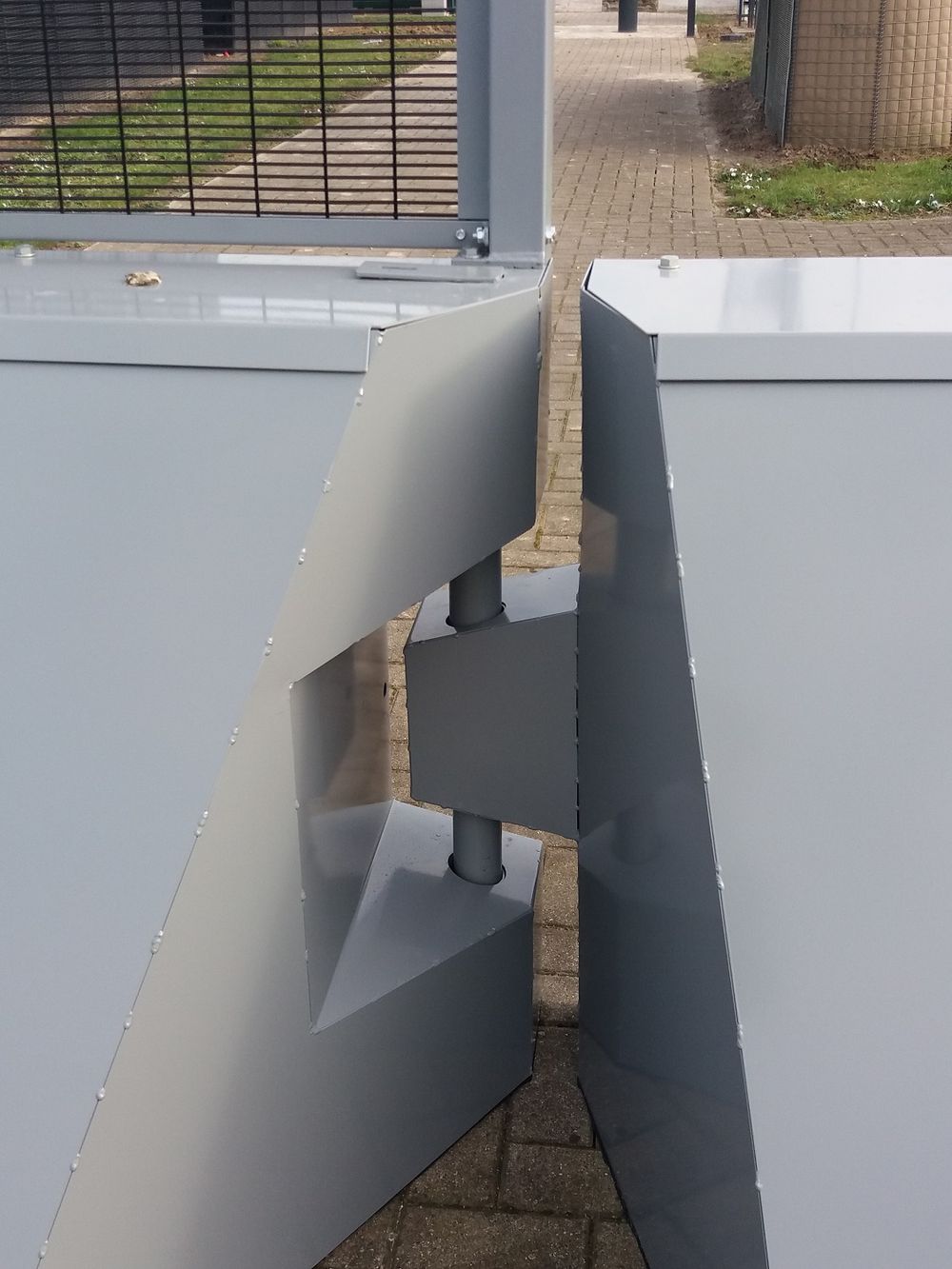 Ogni modulo che ha la superficie piatta sul lato di attacco e la parte più voluminosa sul lato di protezione, monta un pannello rigido in acciaio della tipologia Nylofor 2d o Securifor 4d o un pannello trasparente in policarbonato, in base alle necessità di sicurezza specifiche dell’area interessata.