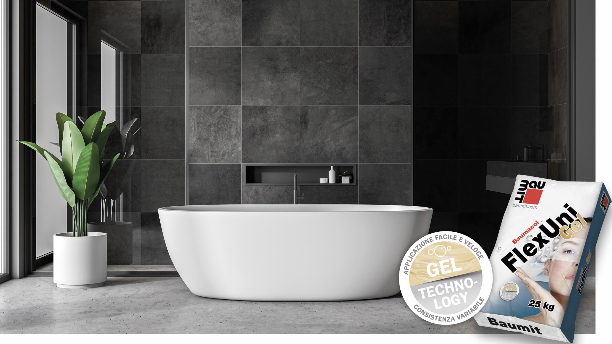 Baumit ha ampliato la sua linea di adesivi per piastrelle con soluzioni ad alto valore aggiunto, fra cui il nuovo Baumacol FlexUni Gel, con innovativa tecnologia gel. Baumacol FlexUni Gel è più semplice e flessibile nell’applicazione, adattandosi ad ogni esigenza: la sua consistenza variabile, da viscoso a cremoso fino a più fluido, consente di scegliere di modulare il prodotto in funzione delle esigenze e preferenze di lavorazione, senza perdita di adesione.