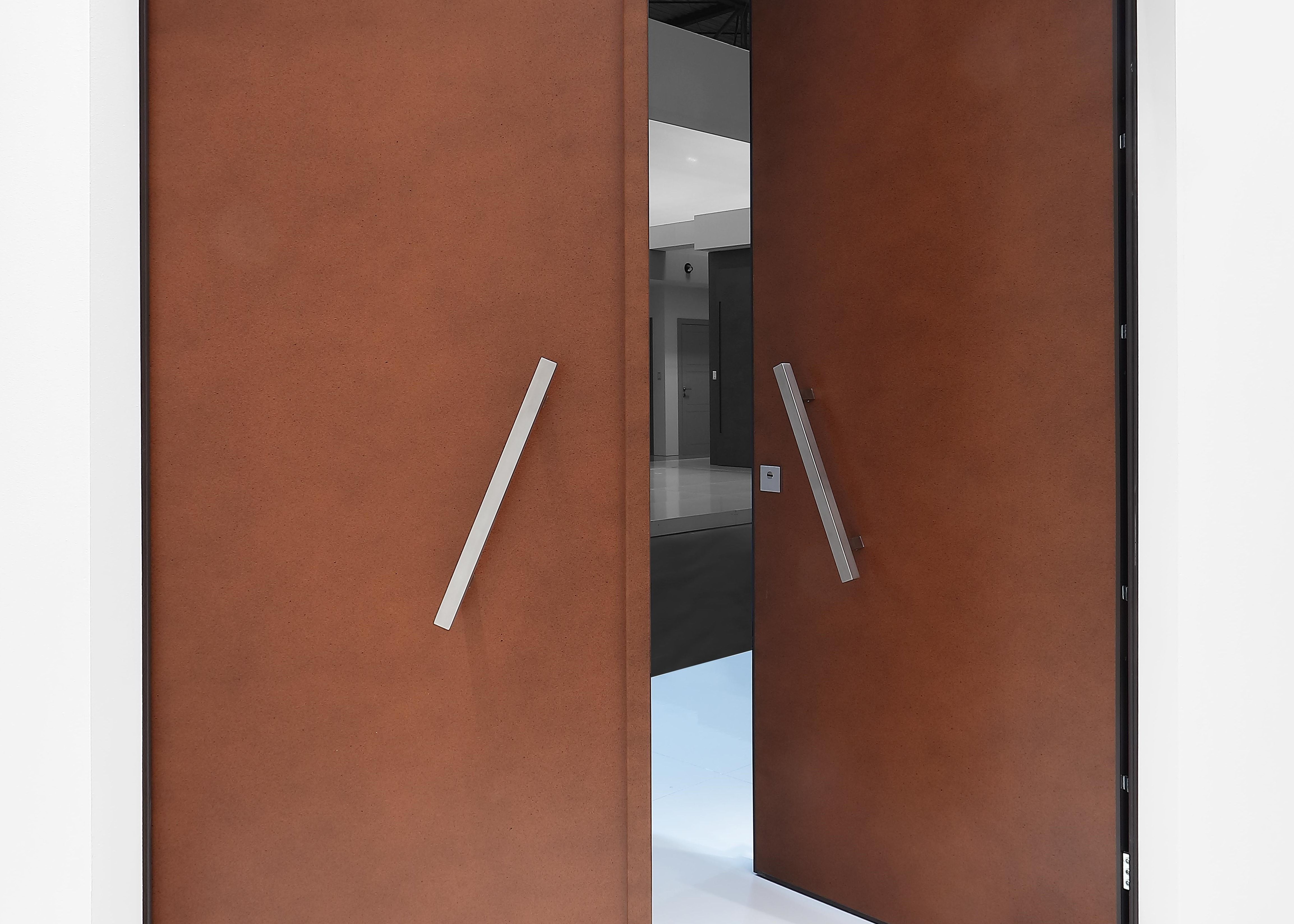 Anche nella versione a due ante, le cerniere Next di Grand Superior, progettate e realizzate ad hoc nello stabilimento Bauxt, sono a scomparsa per una migliore estetica della blindata nello spazio: consentono l’apertura dell’anta fino a 100°, sono registrabili su due assi e visibili ad anta aperta con finitura color argento.