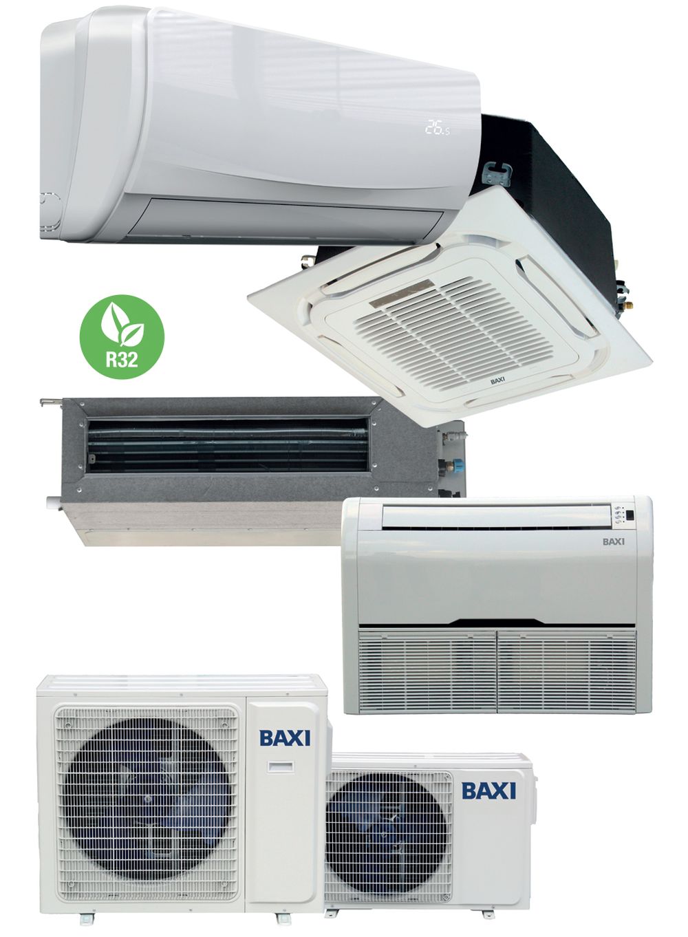 La gamma, conforme alle normative europee in tema di etichettatura energetica, comprende tre tipi di unità interne sia nella versione Mono Split che Multi Split (dual, trial, quadri e penta): a cassetta, canalizzate, a pavimento/soffitto.