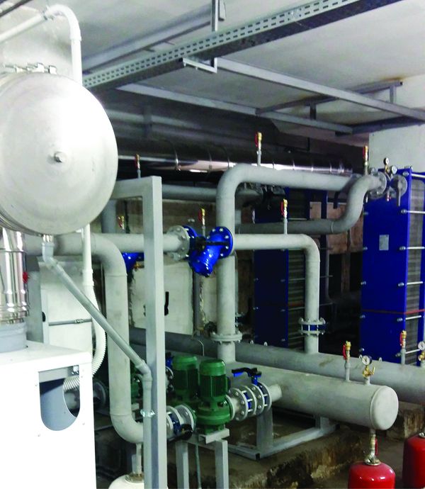 I tre generatori sono stati installati in un sistema idraulico suddiviso tra un circuito primario e uno secondario, separati da una coppia di scambiatori a piastre posizionati l’uno accanto all’altro.