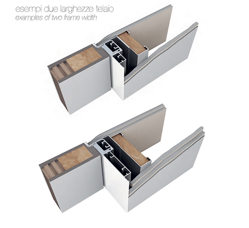 Walldoor Minima è la soluzione con telaio reversibile, una porta filomuro che si monta sia su pareti in muratura che su tramezzi in cartongesso.