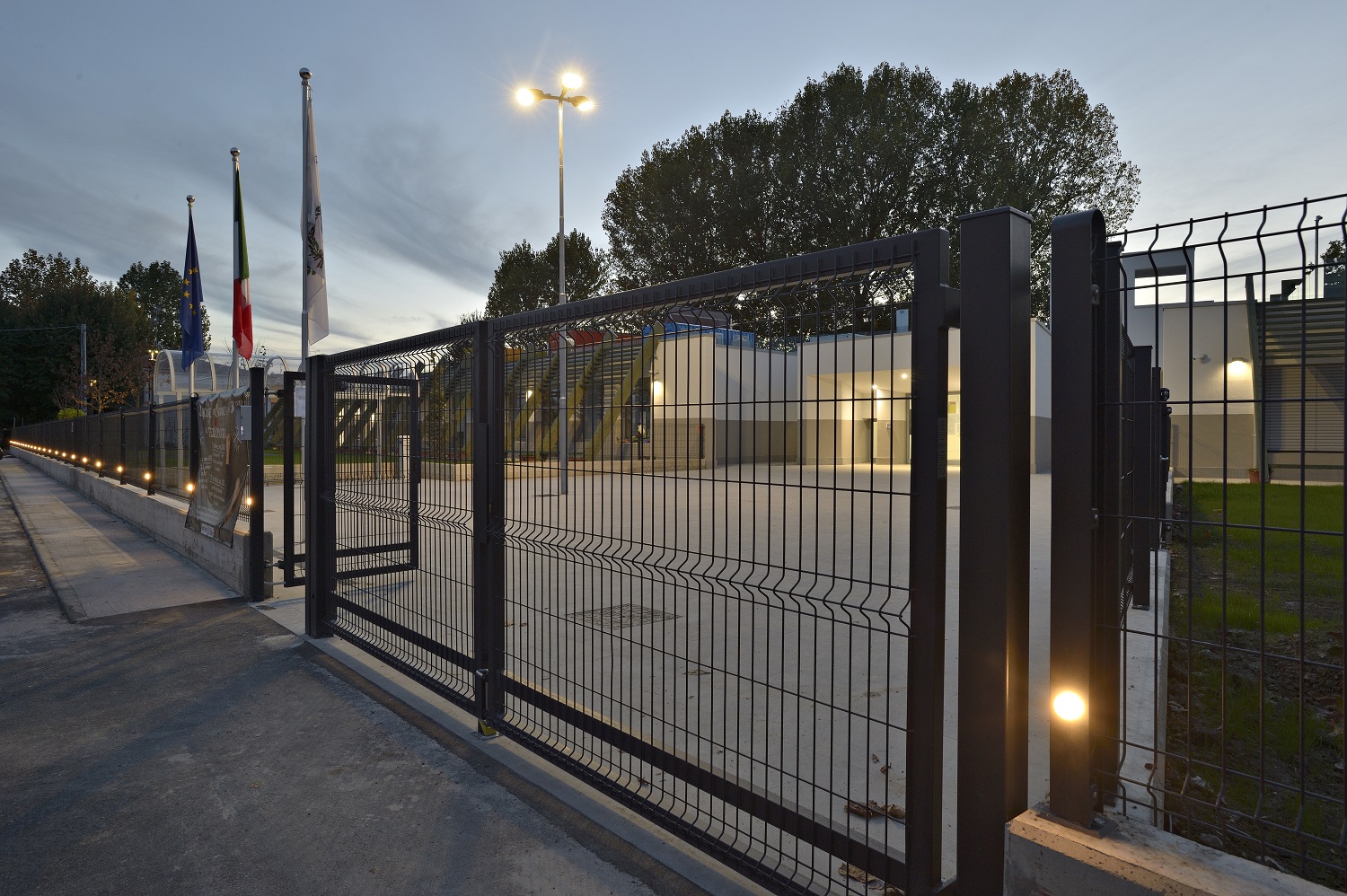Per la delimitazione dello spazio esterno è stata scelta Betafence, azienda specializzata nelle soluzioni di sicurezza per l’edilizia scolastica. Le recinzioni perimetrali delle scuole devono saper rispondere alla necessità di tutelare i bambini impedendo l’ingresso di persone non autorizzate nell’area, ostacolare lo scavalcamento e la fuoriuscita non controllata dei minori ed evitare ferimenti nell’appoggio o scavalcamento di eventuali delimitazioni. Oltre a demarcare i confini garantendo la sicurezza e la protezione dei bambini da e verso l’esterno e tutelarne l’incolumità, le recinzioni Betafence sono dotate di innovativi rivestimenti privi di cadmio e piombo e quindi atossici, anche a contatto diretto con il prodotto. l’intervento di Crevalcore sono stati scelti pannelli di recinzione Betafence della tipologia Nylofor installati con la nuova soluzione Betafence, il palo di fissaggio B-Lux, per un totale di 233 metri lineari. Il pannello Nylofor 3D è in grado di coniugare protezione e rigidità, doti conferite dalla robusta rete formata da fili d’acciaio elettrosaldati con maglie rettangolari e nervature orizzontali di rinforzo.