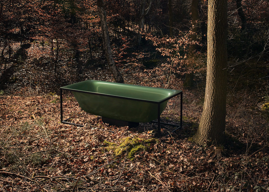 La vasca centro stanza BetteLux Shape, è uno dei prodotti ideali per giocare con il colore Forest. La struttura aperta in acciaio verniciato a polvere funge da sostegno per la vasca di acciaio al titanio vetrificato che sebbene sia sottile è molto stabile e non si piega sotto il carico. La vasca assume un carattere scultoreo che cambia a seconda dell’angolo e del modo in cui cade la luce, il nuovo colore, infatti, trattato con il procedimento wet-wet di Bette, è sottoposto a elevate temperature in forno e quindi in grado di godere di tutti i vantaggi evidenti del titanio vetrificato: eleganza, resistenza, igiene, easy-care, resistenza ai raggi uv.