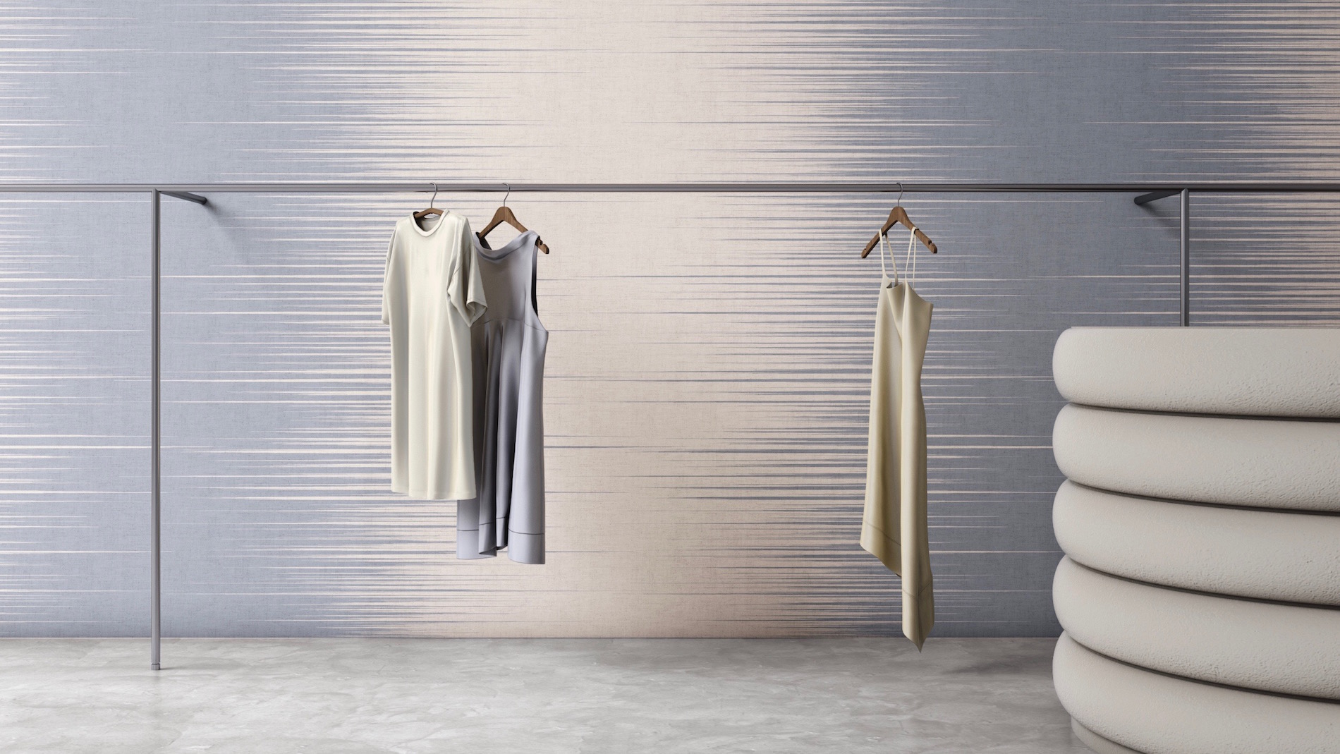 Sempre di Silvia Musetti un altro inedito, Vibrazioni, una collezione perfetta anche per spazi contract: una carta da parati geometrica che gioca con piacevoli contrasti.