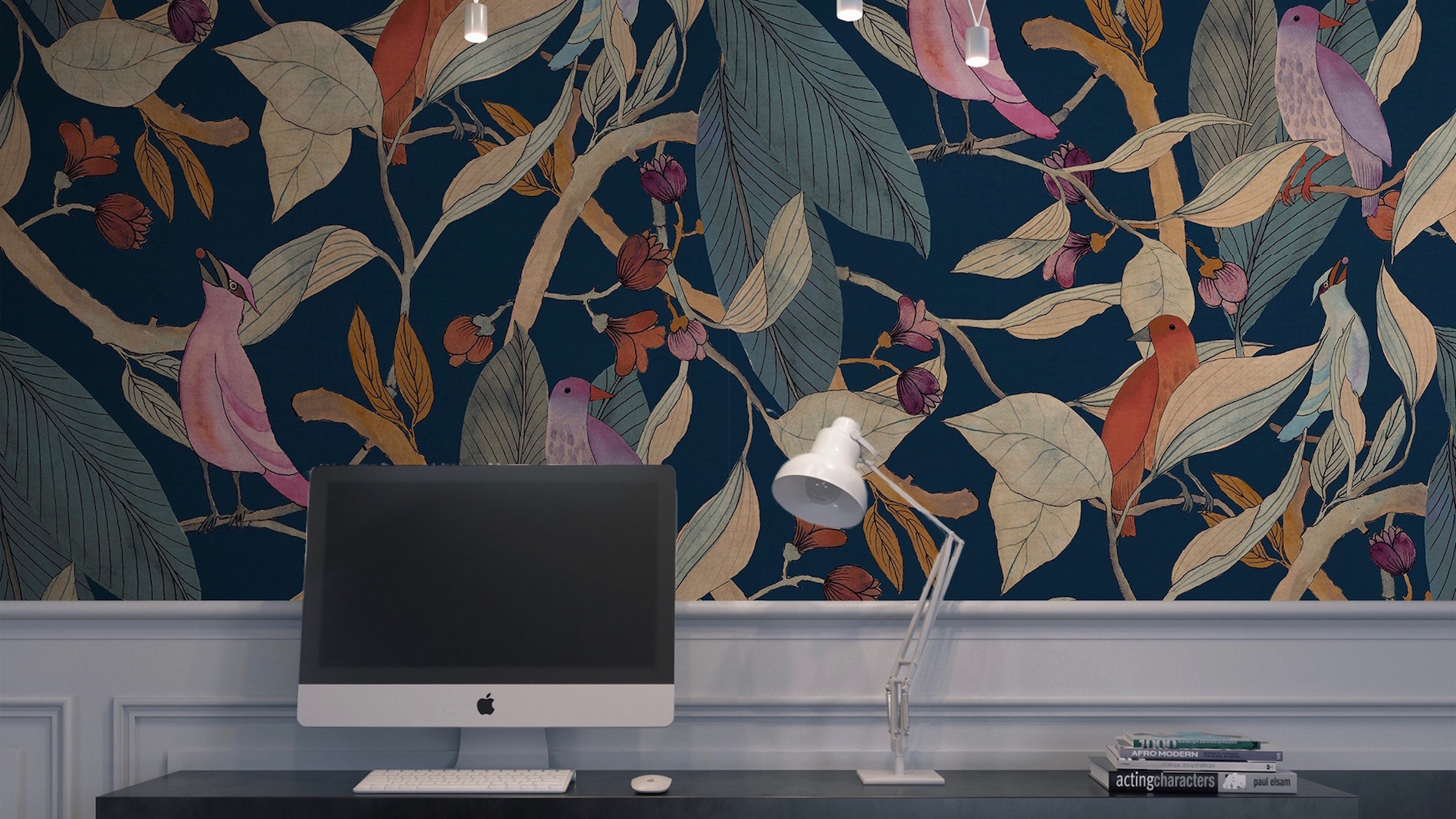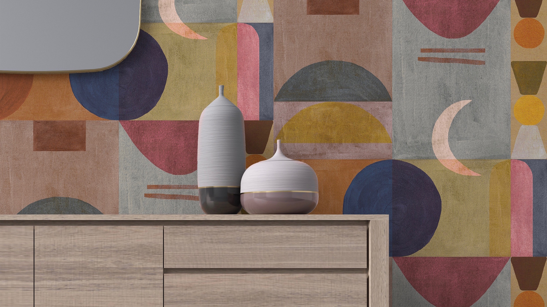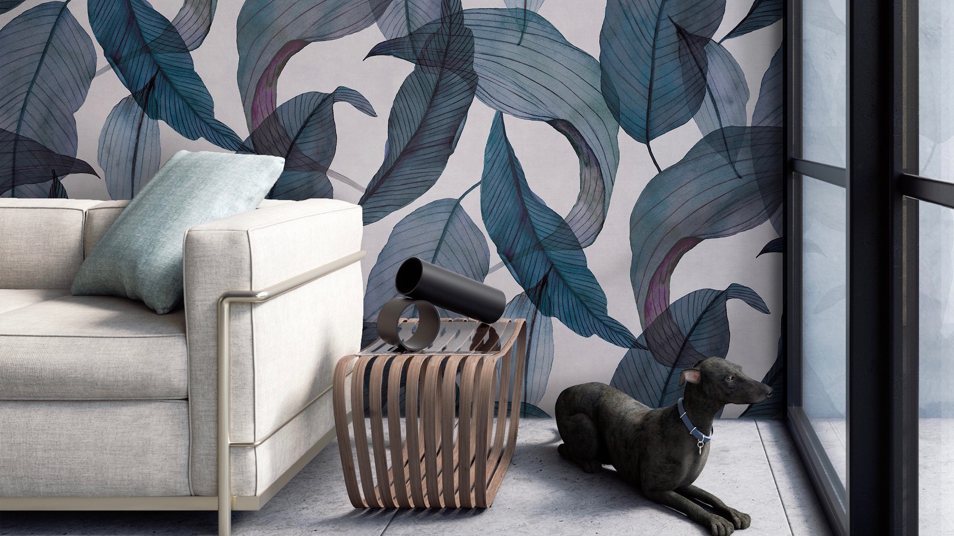 Lei, la luna si caratterizza per il disegno composto da forme geometriche che rievoca il passaggio dal giorno alla notte espresso da un panorama metafisico. In Foliage sono le foglie, con le loro trame e i loro dettagli, ad essere l’oggetto di studio di questa carta da parati.