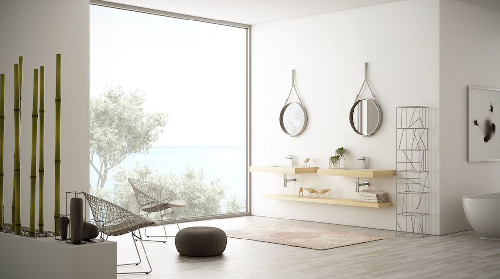 Abbinandosi perfettamente ad un arredo bagno di stile nordico, con legni chiari e volumi compatti. La leva ultrapiatta definisce, per azionare l’erogazione idrica, un movimento semplice ed ergonomico.