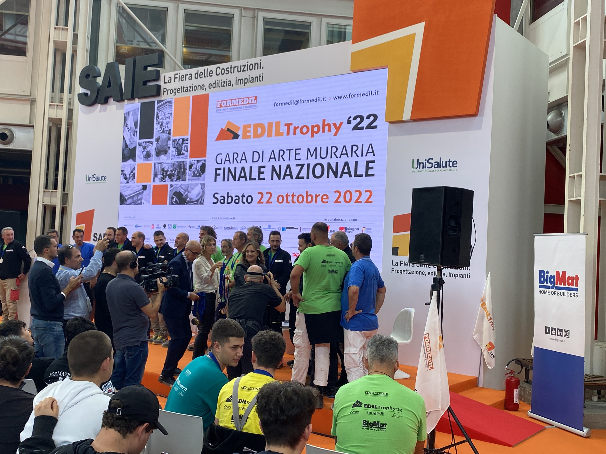 Si è svolta domenica 22 ottobre in occasione della giornata conclusiva di Saie la competizione Ediltrophy: manifestazione di arte muraria su “lavorare bene, lavorare in sicurezza”. A vincere il titolo di “Muratori dell’anno” una squadra laziale e una lombarda che hanno utilizzato materiali forniti da BigMat e Kapriol.