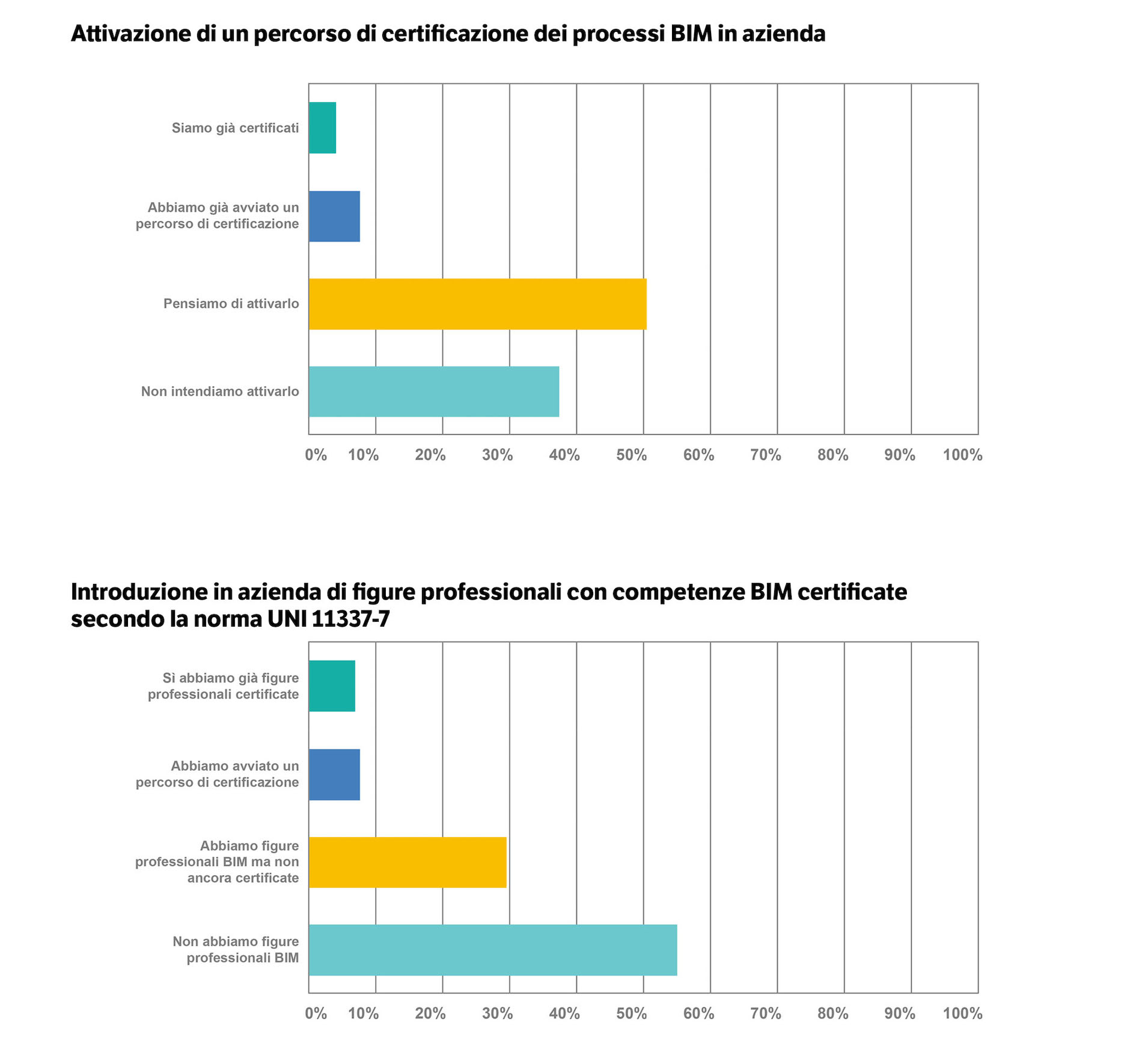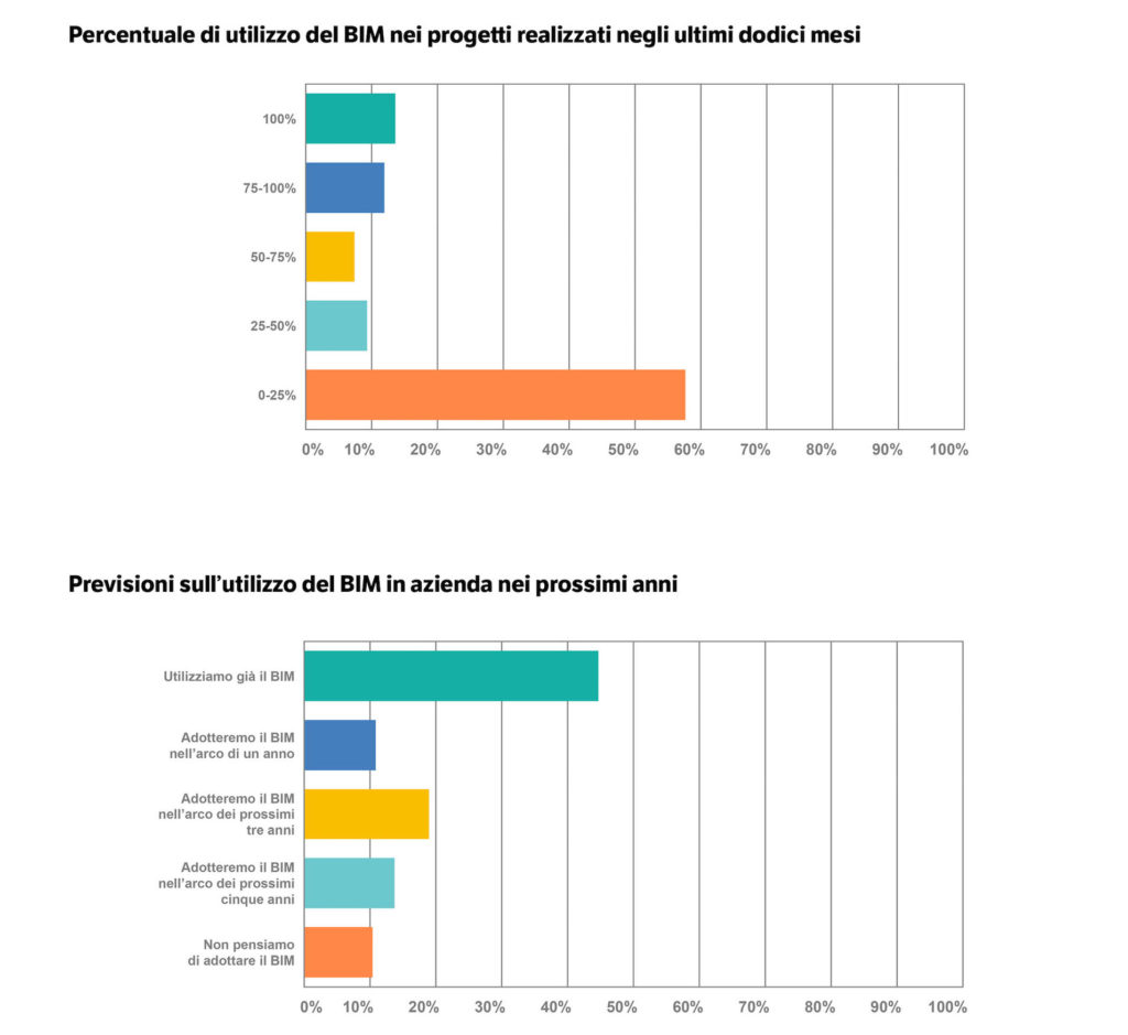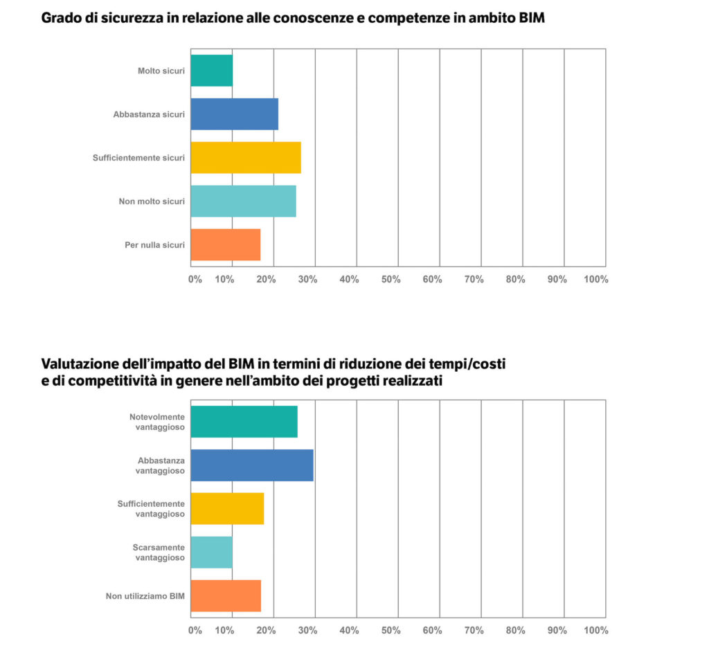 Uno dei principali scopi dell’indagine era appurare il grado di conoscenza e utilizzo del Building Information Modeling e delle sue potenzialità fra gli operatori del settore, e i risultati sono stati positivi.