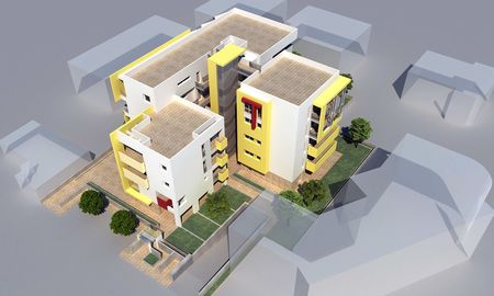 Sono stati previsti 3 appartamenti al piano terra, 5 appartamenti ai piani 1°, 2° e 3°, 3 appartamenti al 4° piano, ciascuno dotato di area giorno con annesso angolo cottura e zona notte con camera matrimoniale, camera singola e doppi servizi, questi dotati di aerazione naturale e con pavimenti e rivestimenti in piastrelle di ceramica.