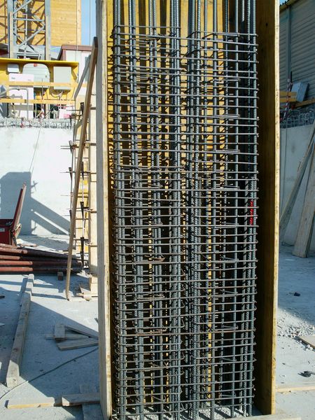 Questi telai sono incorniciati perimetralmente da diaframmi intonacati e verniciati, ad enfatizzarne il ritmo, e interrotti da 2 lame verticali in c.a. prefabbricato, nell’angolo a est, in modo da liberare la maschera sommitale che incornicia l’appartamento di testata verso nord.