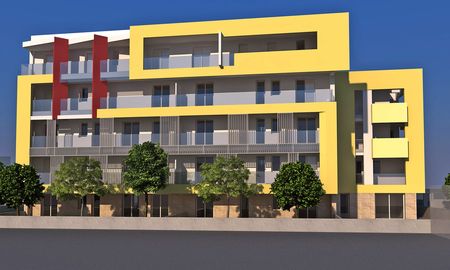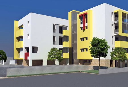 Sono stati previsti 3 appartamenti al piano terra, 5 appartamenti ai piani 1°, 2° e 3°, 3 appartamenti al 4° piano, ciascuno dotato di area giorno con annesso angolo cottura e zona notte con camera matrimoniale, camera singola e doppi servizi, questi dotati di aerazione naturale e con pavimenti e rivestimenti in piastrelle di ceramica.