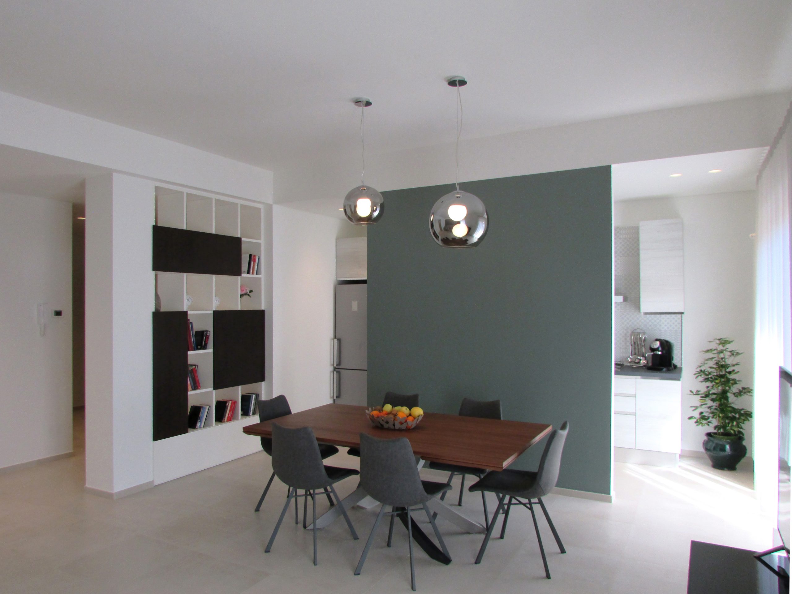 Lo studio ha previsto la ristrutturazione dell’intero immobile e il restyling di tutti gli ambienti con la creazione di nuovi spazi abitativi. Per quanto riguarda l’unità adibita a studio è stato ricreato uno spazio per accogliere un ufficio completo di sala riunione, servizi igienici e una piccola lounge di attesa.