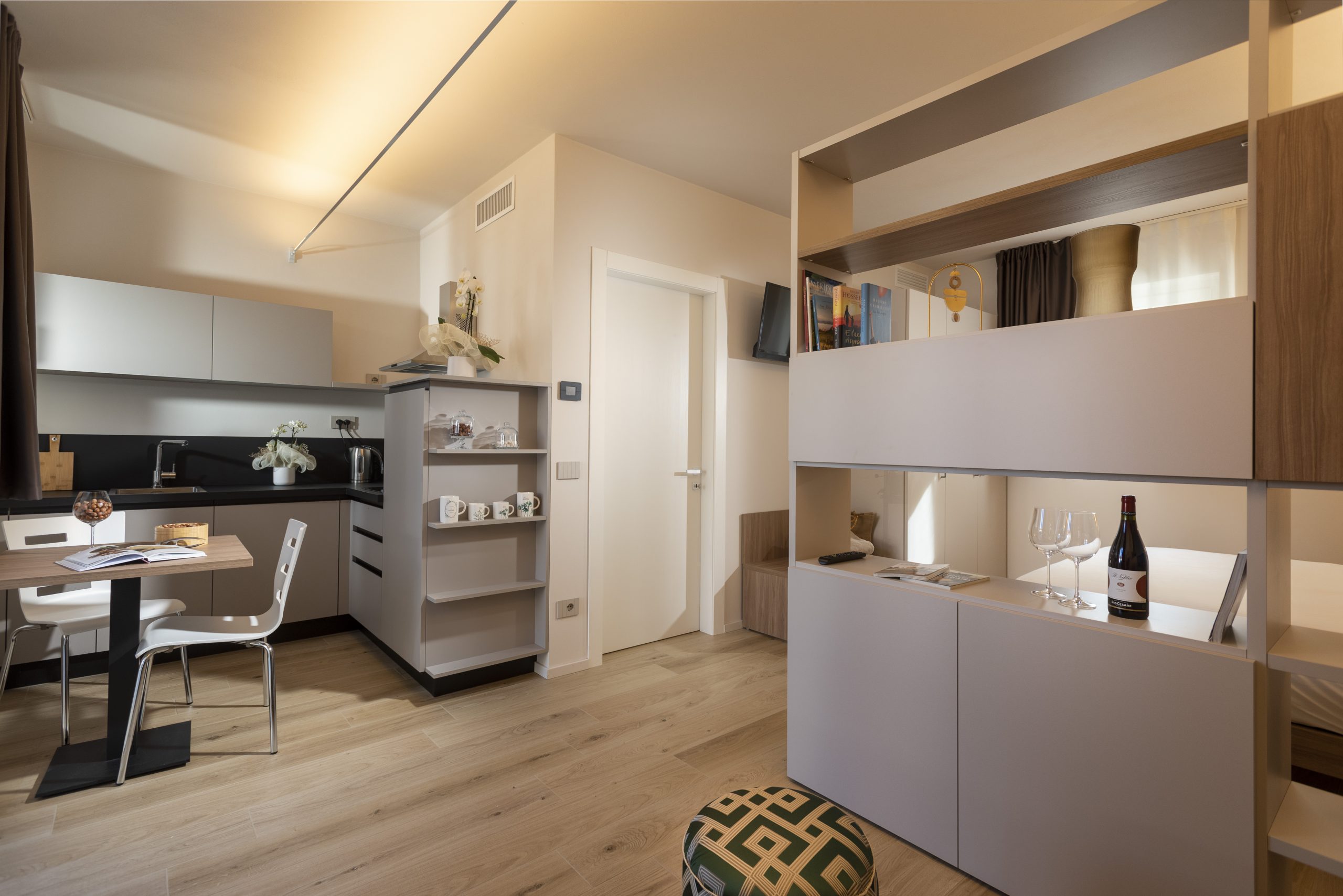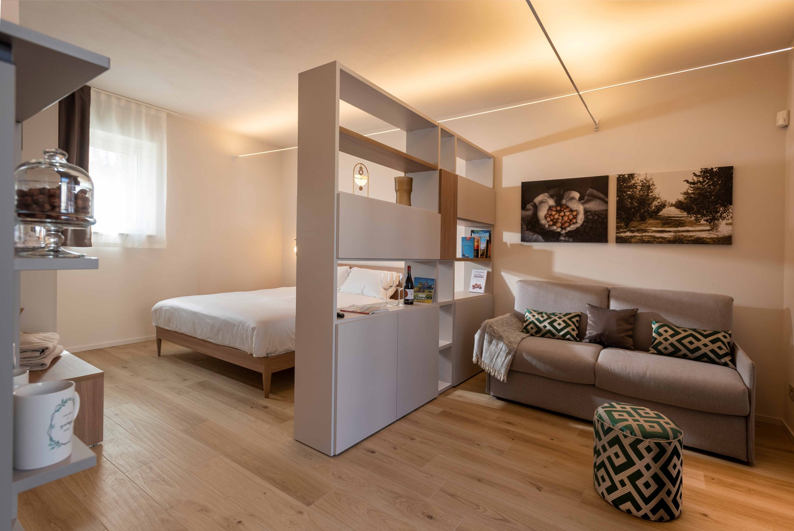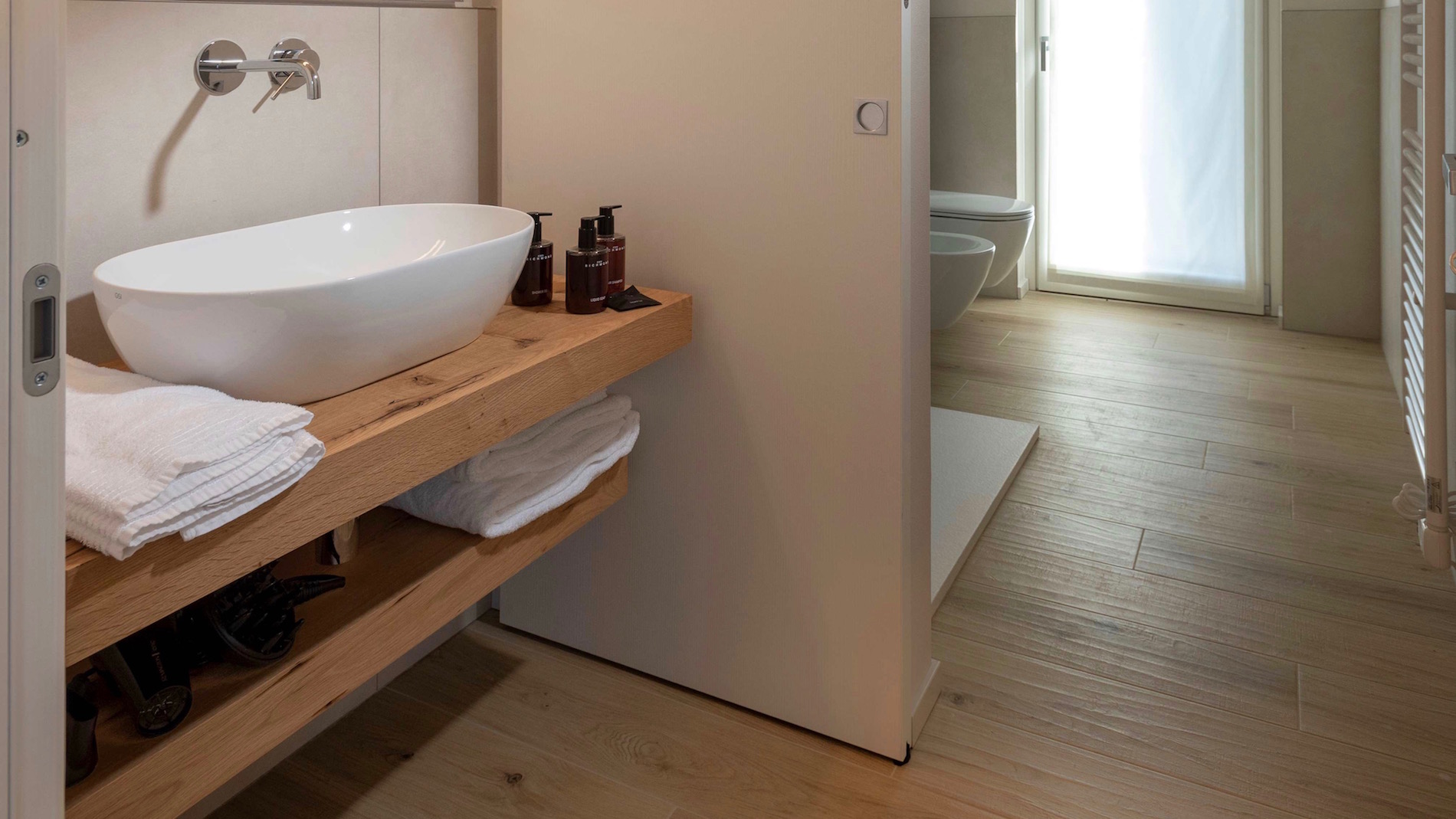 Per i pavimenti delle due suites e dei due esclusivi monolocali è stata utilizzata la collezione Green Wood di Blustyle.