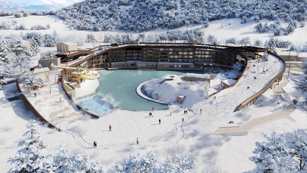 Elemento distintivo del progetto è la sinuosa onda che sovrasta e idealmente avvolge l’intera struttura. Concepita come un parco ricreativo polifunzionale, la copertura interattiva accoglie un osservatorio astronomico, un’area giochi, una SPA e un parco con piante e alberi rigorosamente autoctoni.