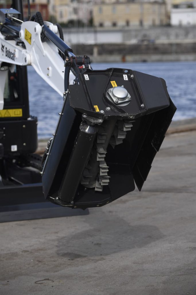 Sl Fm 85 ha una larghezza di taglio di 850 mm e una portata idraulica di 36-70 l/min ed è compatibile con i miniescavatori Bobcat da E26 a E35z da 2,6-3,5 tonnellate.
