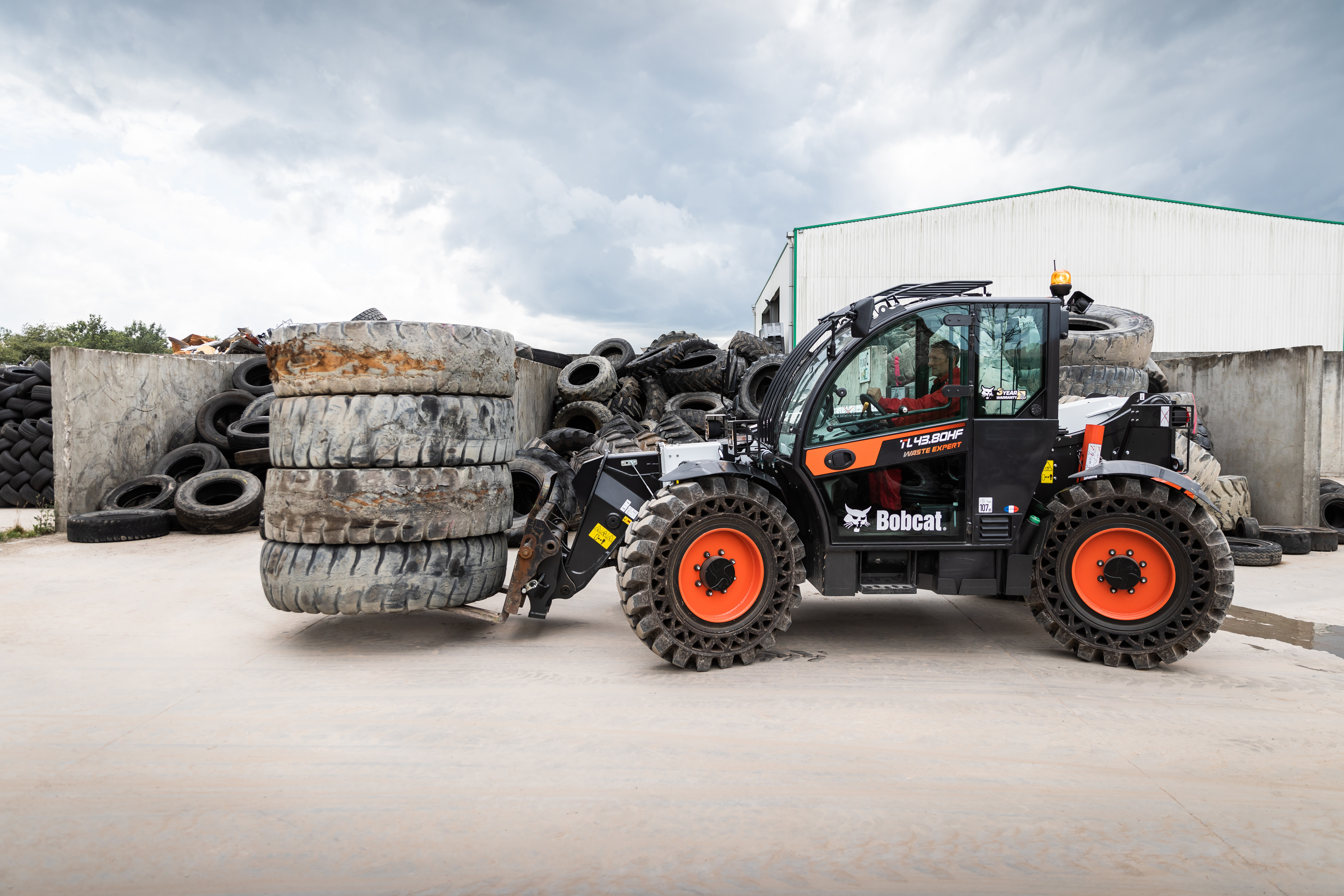 Bobcat offre diversi tipi di pneumatici per le diverse superfici che si possono trovare nei siti di smaltimento e riciclo, tra cui Michelin 460/70R24 Bibload, uno pneumatico rinforzato con fili d’acciaio e con battistrada a diamante che offre una maggiore resistenza all’usura e alle lacerazioni e un’eccellente fluidità di guida.