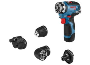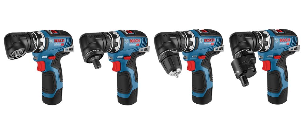 Il Gsr 12V-35 FC Professional è di 17 millimetri più corto del modello precedente, ed è il più versatile e compatto sul mercato nella sua categoria. Grazie ai suoi quattro accessori – portabit con trattenitore, mandrino autoserrante, portabit con attacco disassato e testa ad angolo – sono possibili in totale otto diverse configurazioni. Bosch consente di combinare e utilizzare la testa ad angolo con ciascuno degli altri tre accessori.