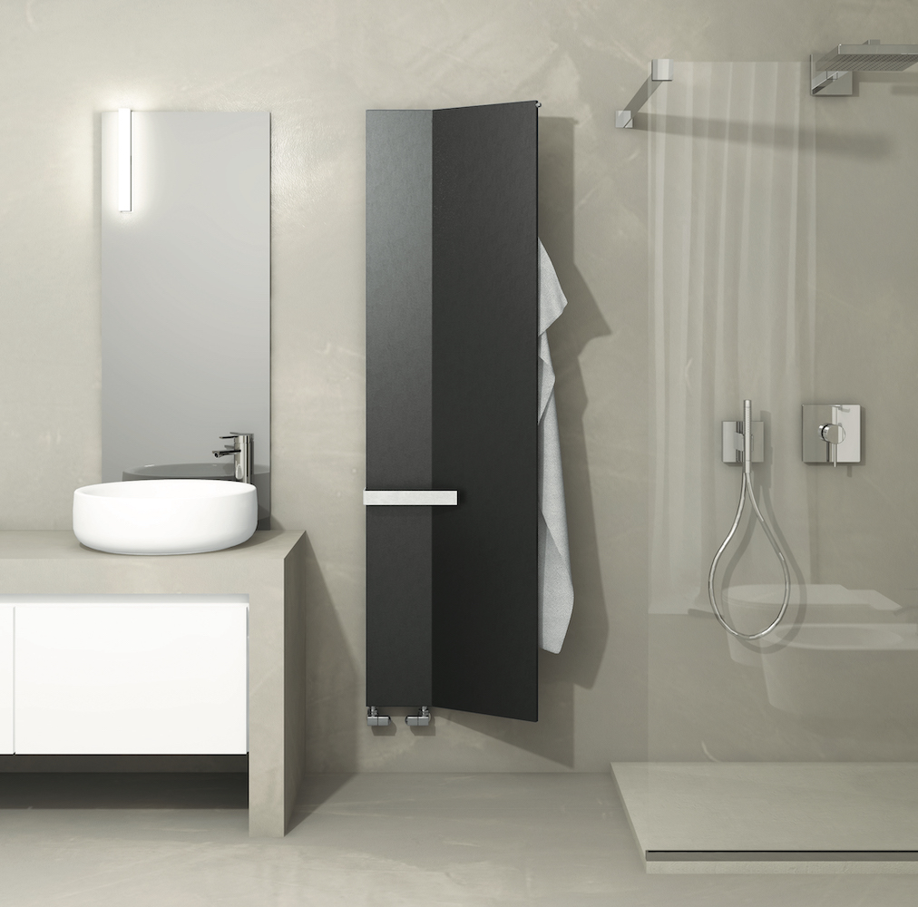 Gli asciugamani, invece, trovano posto su una pratica barra frontale, disponibile di serie nelle tonalità bianco sablé, grigio mica sablé, nero mica sablé e nel medesimo colore del radiatore ordinato.