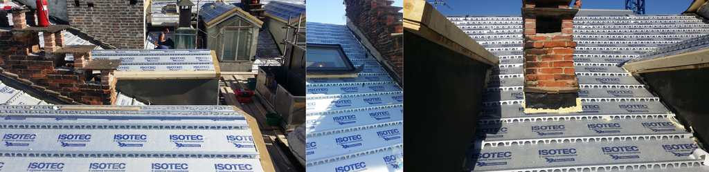 La posa del sistema isolante è risultata particolarmente rapida nonostante l’elevato grado di complessità delle geometrie delle falde, caratterizzate da innumerevoli tagli, compluvi, converse e interruzioni dovute ai numerosi abbaini, comignoli e muretti. Tutte le problematiche sono state risolte grazie all’eccellente lavorabilità del materiale, che può essere facilmente tagliato a misura in cantiere con un segaccio a lama rigida e flessibile a disco per il correntino. Tutti i raccordi fra le lastre nei punti di cambiamento di pendenza e con i corpi emergenti, sono stati sigillati mediante l’apposita schiuma poliuretanica e i giunti protetti con la guaina in alluminio butilico, forniti da Brianza Plastica a completamento del sistema. I pannelli Isotec XL realizzano inoltre, una volta posati, un impalcato portante facilmente pedonabile. Questo aspetto, unitamente alla lunghezza dei pannelli di 3,9 m e la conformazione a battenti contrapposti, apporta notevoli vantaggi in termini di economicità, velocità e sicurezza di posa, oltre ad assicurare chiaramente la continuità dell’isolamento senza che si formino ponti termici. Inoltre l’estrema leggerezza del materiale consente di realizzare un elevato risparmio energetico ed un comfort abitativo ottimale senza gravare le strutture.