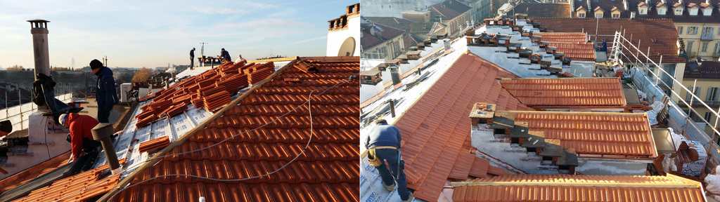L’intervento di ristrutturazione ha previsto la rimozione del manto di tegole esistenti, il ripristino e la messa in sicurezza dell’orditura principale, la sostituzione dei travetti ove necessario e il rifacimento del tavolato ligneo, su cui sono stati stesi teli traspiranti.