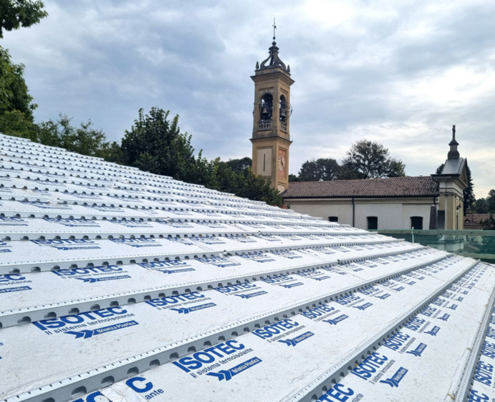 Isotec è disponibile in spessori da 60 a 160 mm, tra cui il nuovo spessore 140 mm per Isotec XL, e offre un’elevata resistenza termica anche in presenza di stratigrafie leggere. Ciò consente di ottenere un isolamento performante con minor ingombro e peso ridotto rispetto ad altri materiali, facilitando la movimentazione e la logistica in cantiere. Tale sistema – preassemblato e dotato di correntino integrato nel pannello isolante – consente di realizzare con un unico passaggio di posa un isolamento continuo, privo di ponti termici, ad elevate prestazioni isolanti e duraturo nel tempo, grazie alle proprietà del poliuretano di cui è fatto; una seconda impermeabilizzazione grazie al rivestimento in lamina di alluminio su entrambi i lati del pannello; una stabile sottostruttura per l’aggancio e il fissaggio di qualsiasi tipologia di rivestimento; la camera di ventilazione, entro la quale si attiva in maniera naturale un flusso d’aria continuo che, nella stagione estiva, contribuisce a migliorare le prestazioni termiche della copertura asportando il calore in eccesso e, nella stagione invernale, agevola lo smaltimento dell’umidità.
