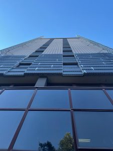I progettisti hanno optato per il sistema Isotec Parete Black di Brianza Plastica, pannelli termici per facciate ventilate con anima isolante in poliuretano espanso rigido (Pir) autoestinguente e rivestimento in estradosso in coating minerale ignifugo. Il pannello, dal caratteristico colore antracite, si caratterizza per le migliorate prestazioni di reazione al fuoco (classe B-s2, d0).