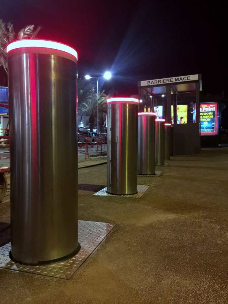 Davanti all’accesso della spiaggia Macé, vicino al Palazzo dei Festival, sono stati installati 6 dissuasori retrattili One 50 Evo con entrata e uscita controllate e 2 dissuasori fissi One 50 Evo.